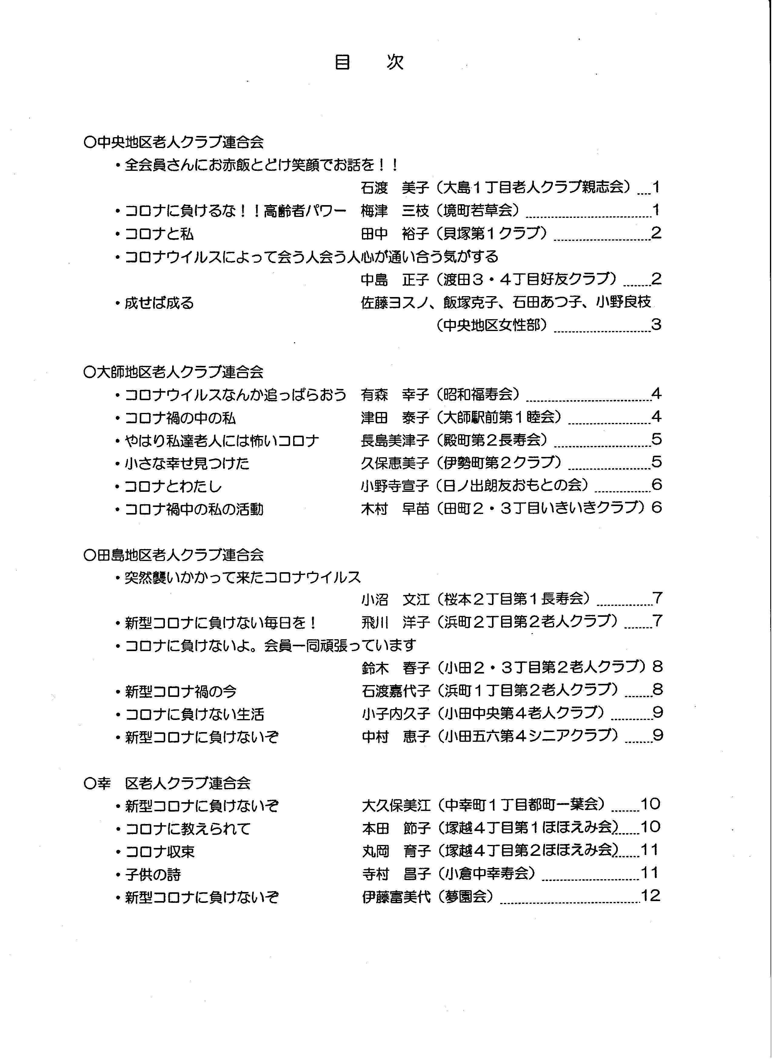 こうしたことから、地域での老人クラブ活動の一助となればと考え、川崎市老人クラブ連合会女性委員会が中心となって女性会員の日常生活活動を寄稿してもらい「新型コロナに負けないぞ!」冊子を作成しました。