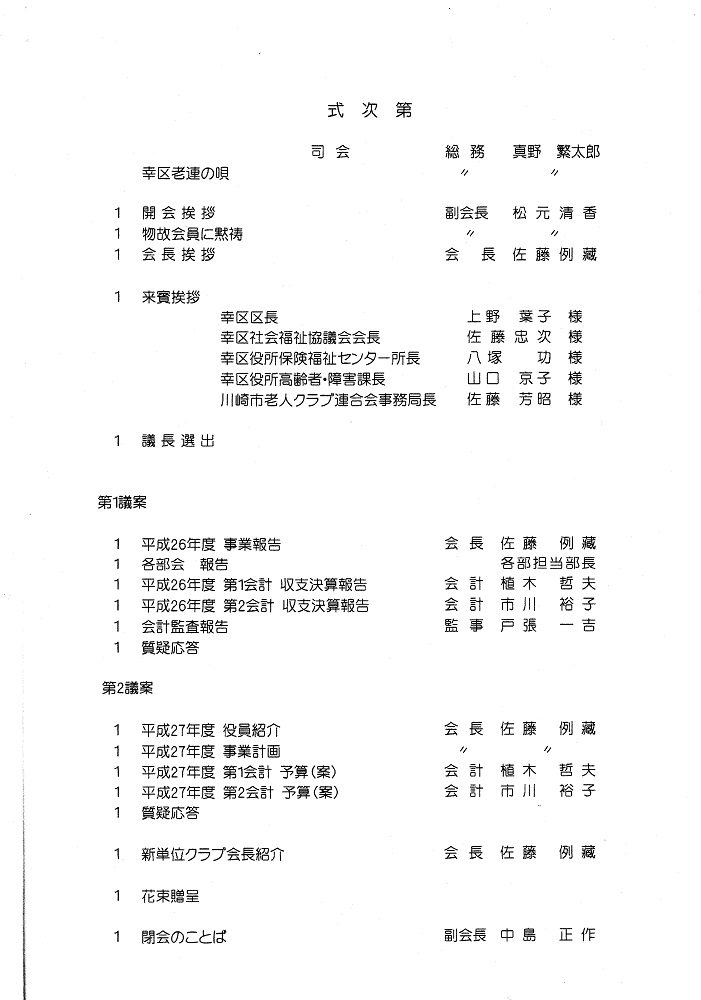 幸区老連 平成27年度の定期総会を開催しましたので、その様子をアップします