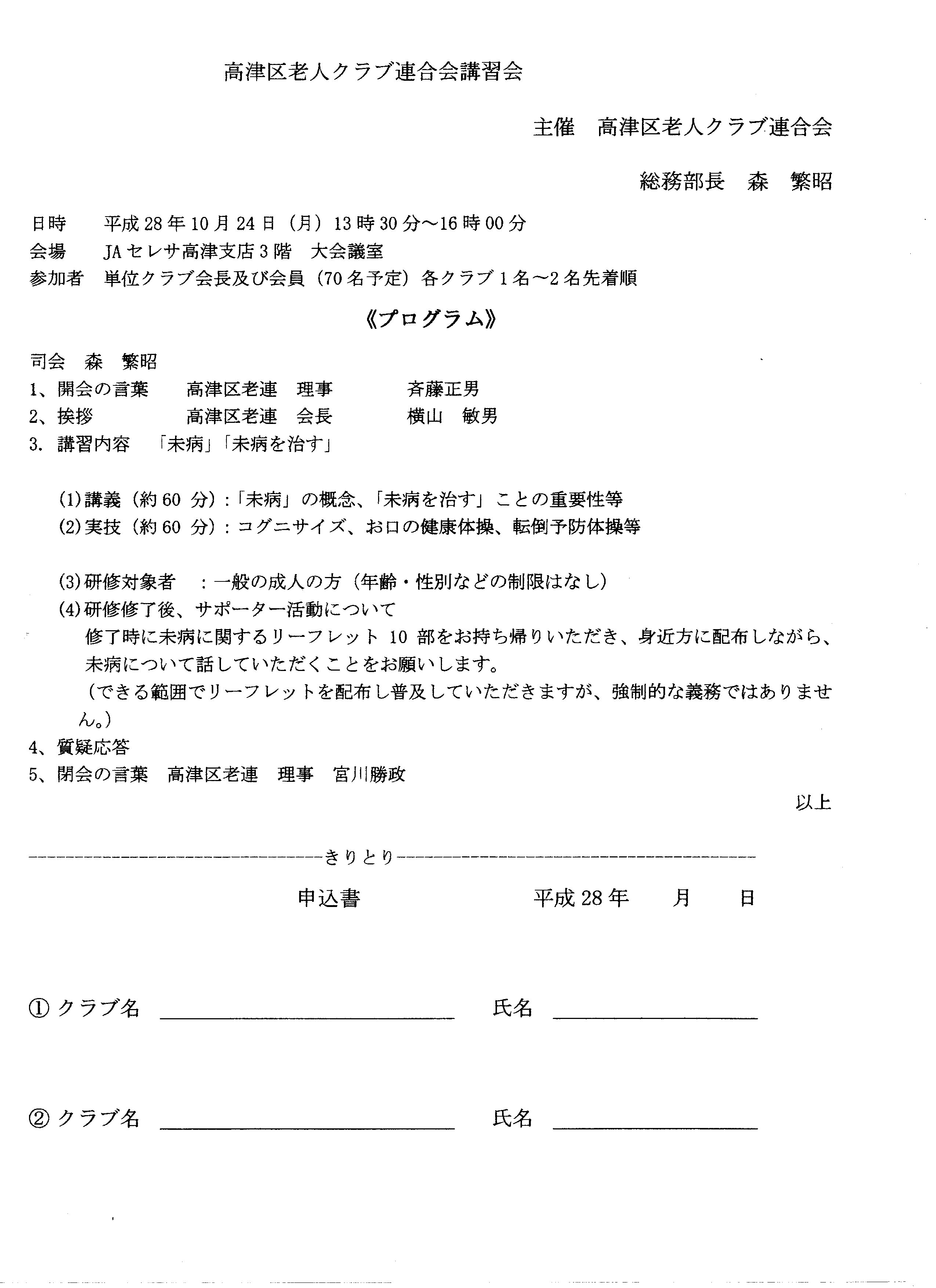 高津区老連で講習会は初めてでしたが沢山のクラブ会員参加し勉強になりました。この講義を生かして長生きしましょう。